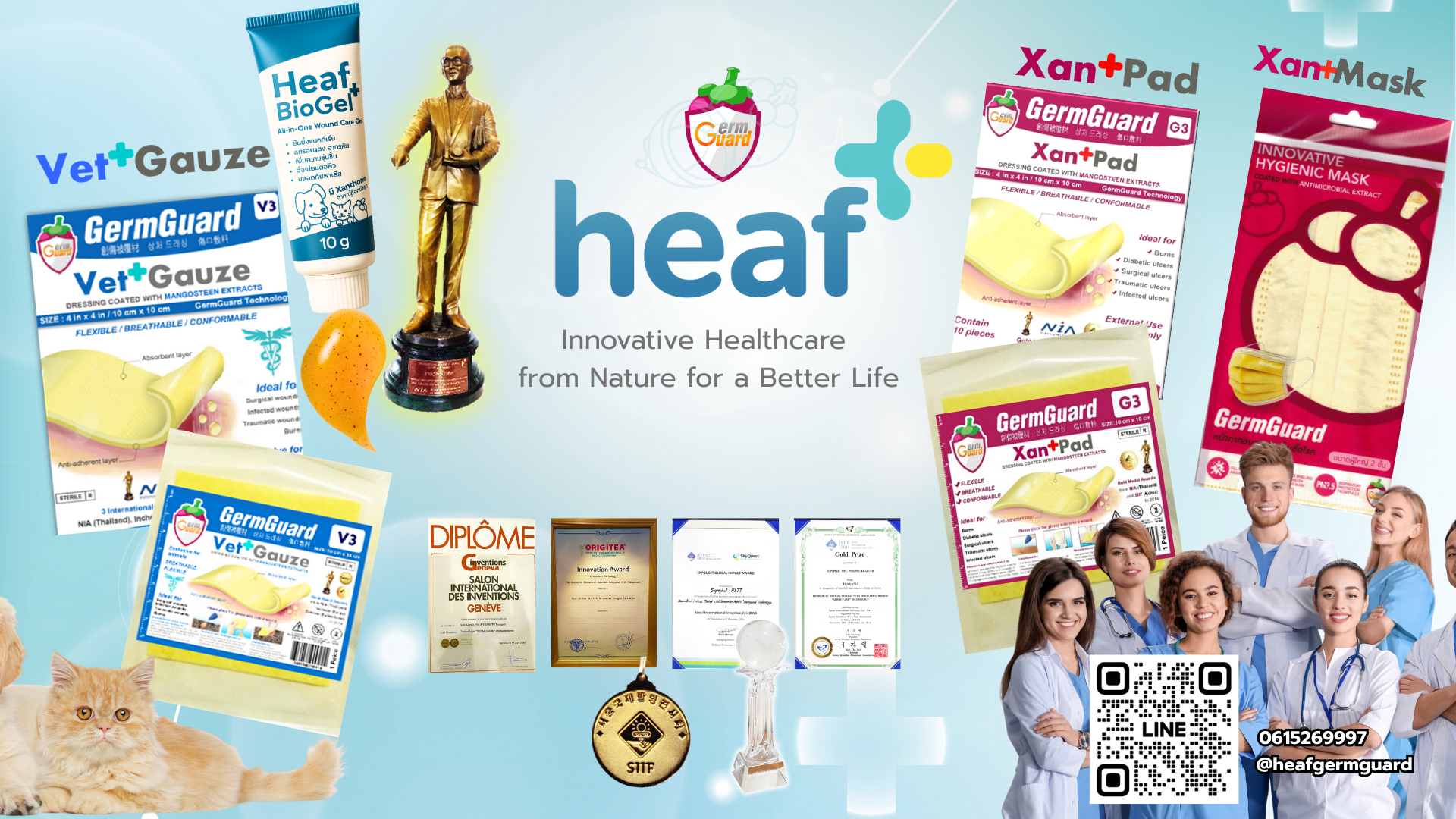 นวัตกรรม Heaf-GermGuard ก่อตั้งขึ้นจากการร่วมมือกันของ ศาสตราจารย์ ดร. พิชญ์ ศุภผล และทีมงาน ผู้เชี่ยวชาญด้านการวิจัยและพัฒนาสินค้านวัตกรรมทางการแพทย์ โดยมีเป้าหมายร่วมกันในการผลักดันงานวิจัยจากห้องแล็บสู่การใช้งานจริง เพื่อให้ประชาชนชาวไทยสามารถเข้าถึงนวัตกรรมที่มีคุณภาพสูงและผ่านการรับรองทางการแพทย์ได้อย่างเท่าเทียม